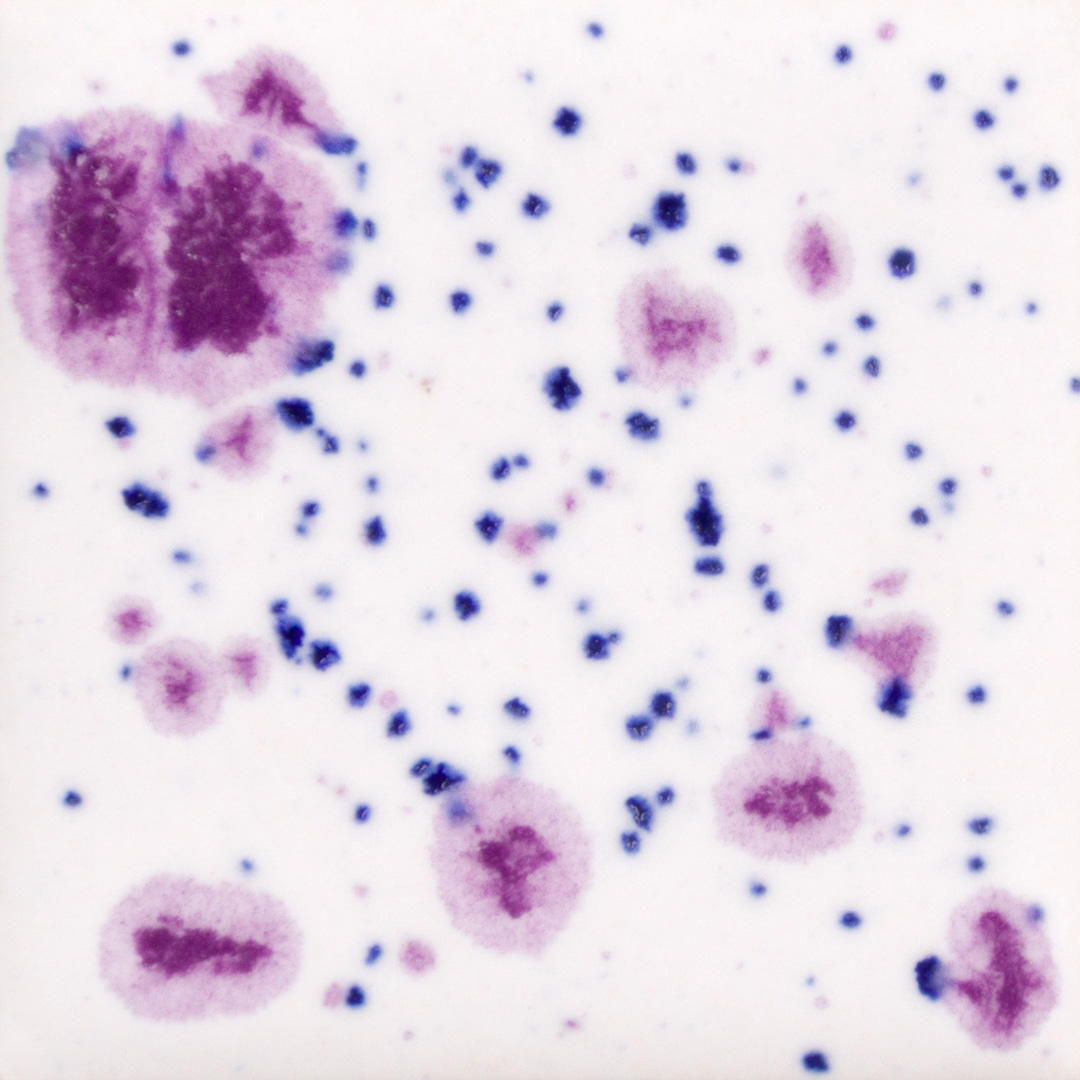 De tegeltjes op de afbeeldingen zijn liggend gestookt op een witte klei tot 1040°C oxidatie en met 1220°C oxidatie.
